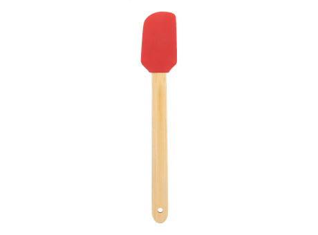 Backspatel aus Silikon mit Weihnachtsmotiv und Bambusgriff.