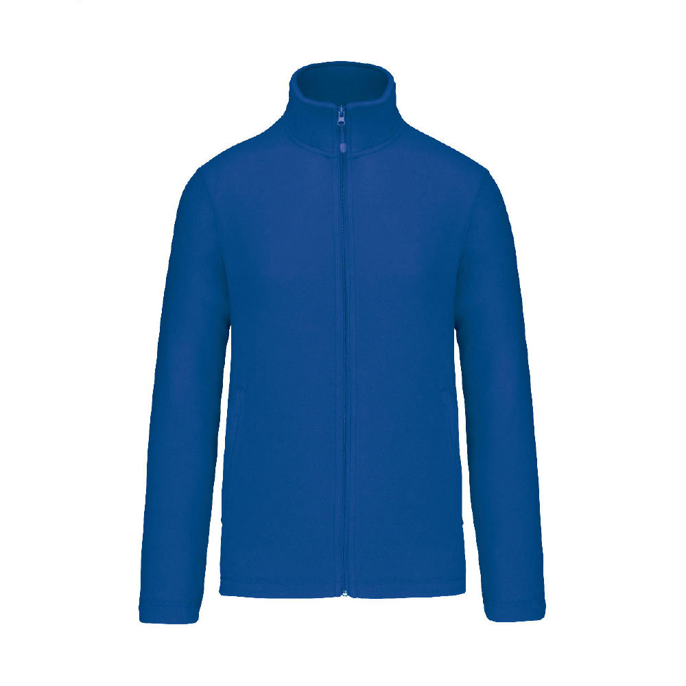 Jacke aus Mikro-Polarfleece mit Reißverschluss und Seitentaschen mit Reißverschluss. Material: 100 % Polyester, 180 g/m². Marke: Kariban.